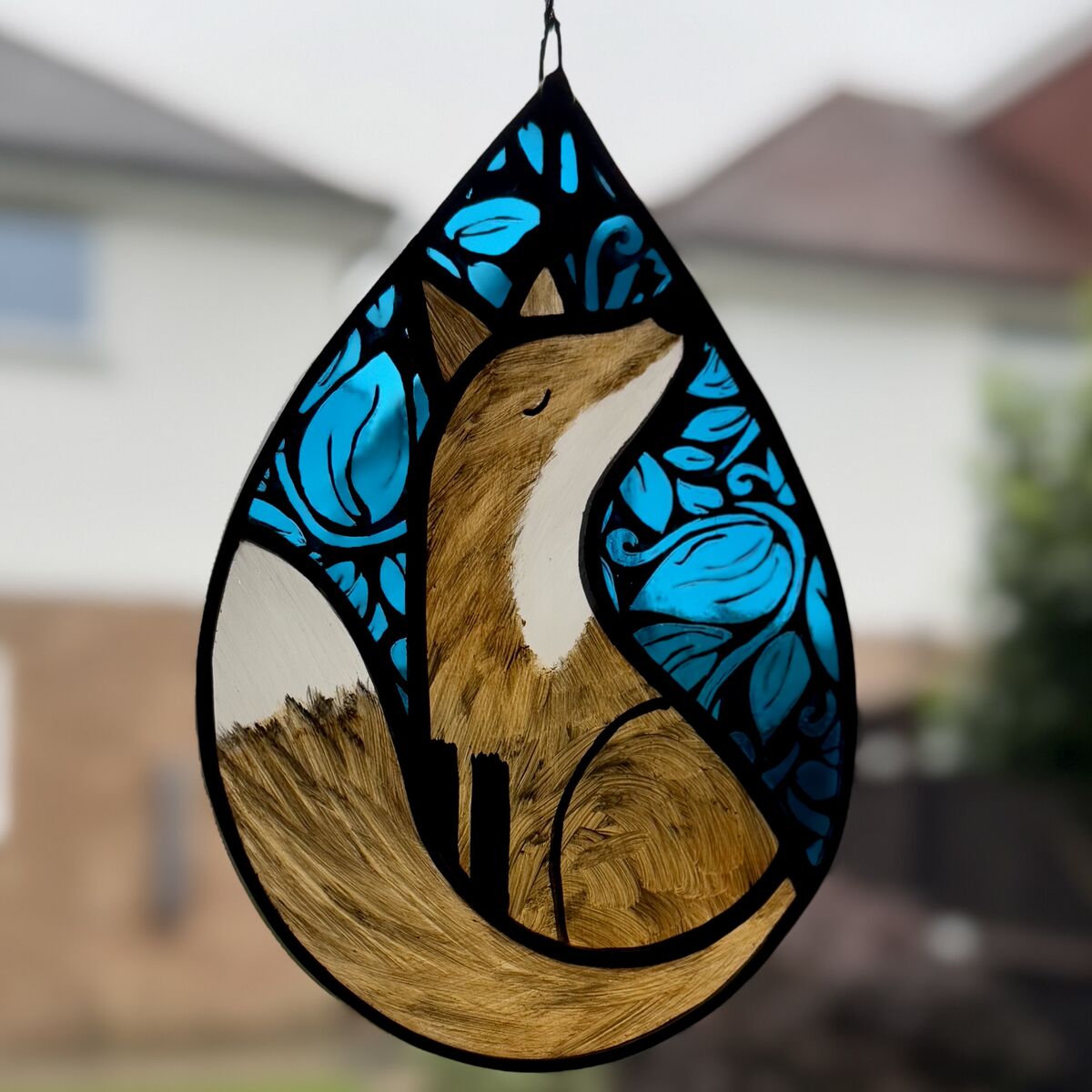 Hand Painted Blue Tit Stained Glass Sun Catcher