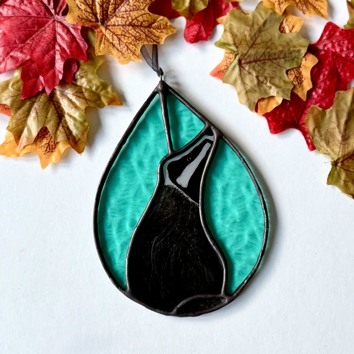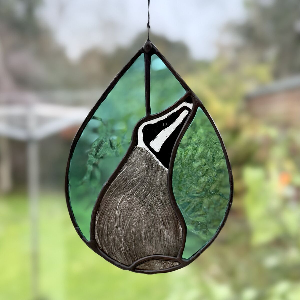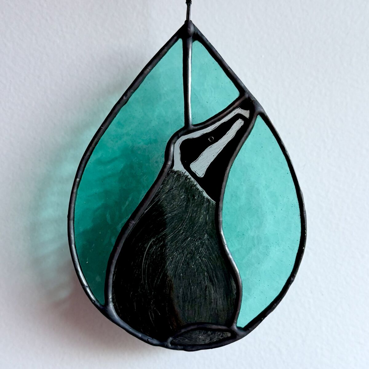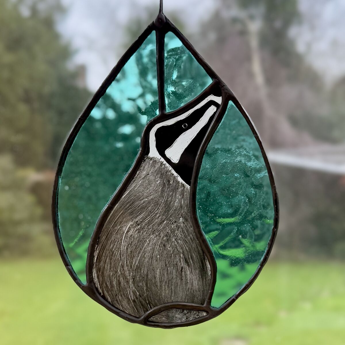 Once cooled each piece of glass is edged with copper foil tape and soldered together. The hanging has been edged in lead came for extra strength and comes with a ribbon for hanging.