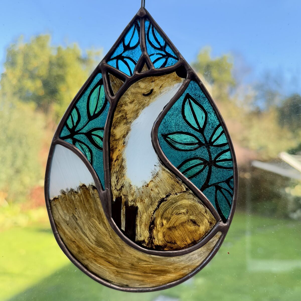 Once cooled each piece of glass is edged with copper foil tape and soldered together. The hanging has been edged in lead came for extra strength and comes with a ribbon for hanging.
