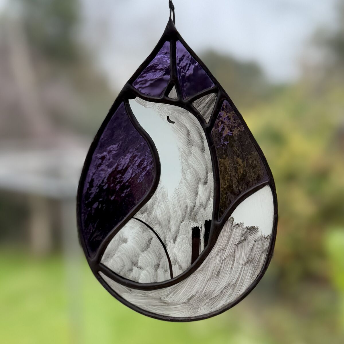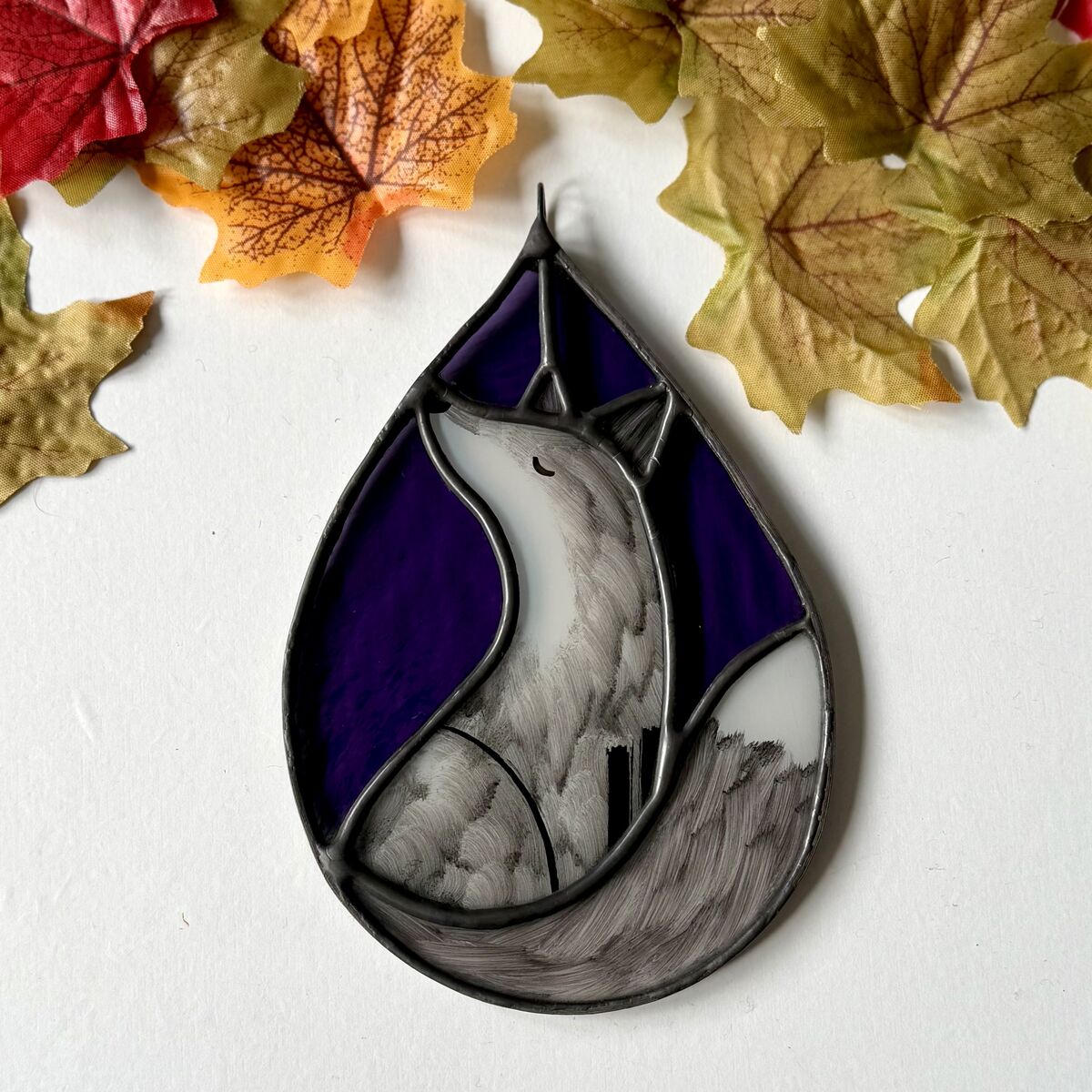 Hand Painted Stained Glass Fox Hanging