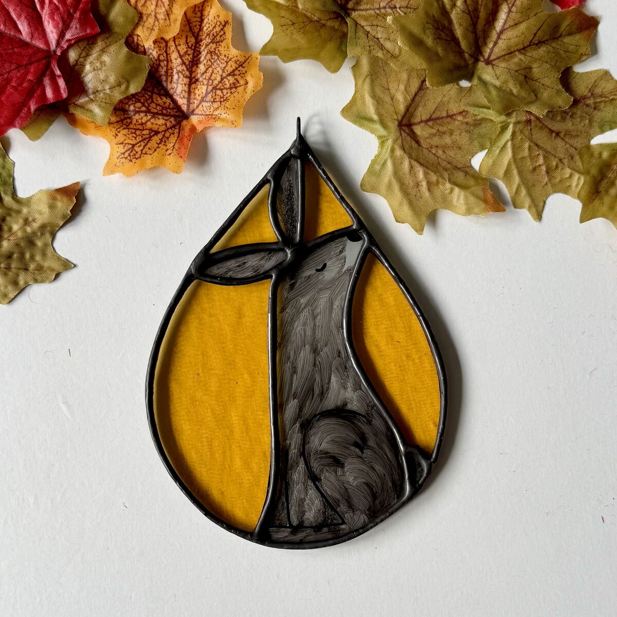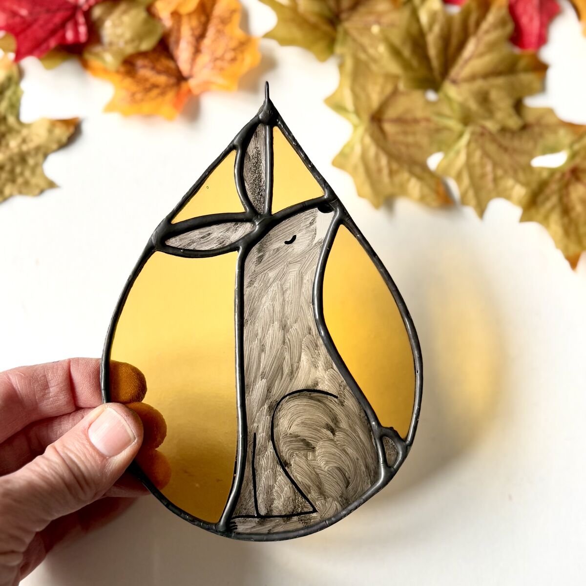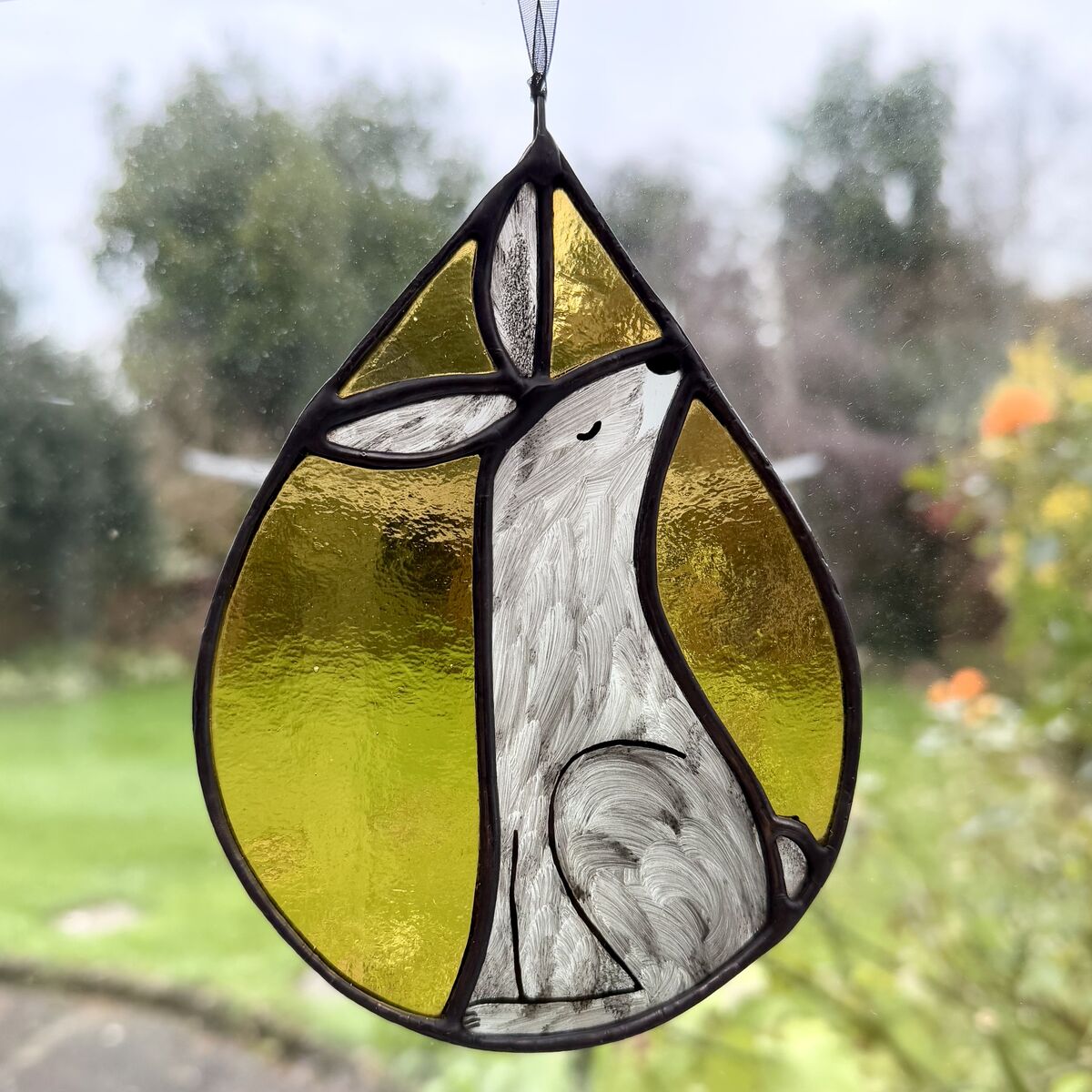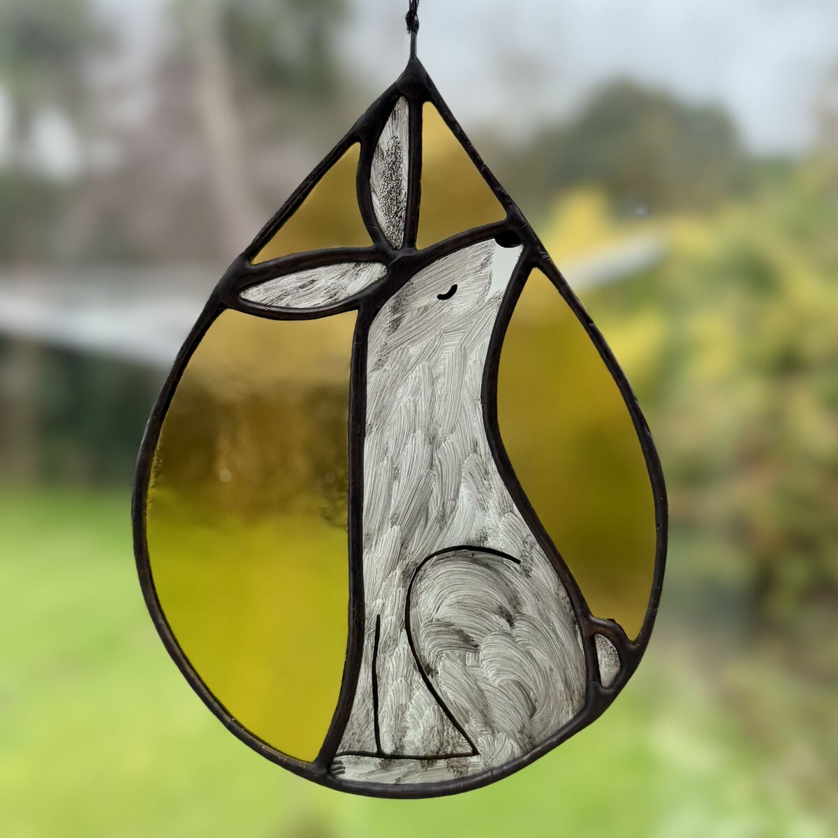 Once cooled each piece of glass is edged with copper foil tape and soldered together. The hanging has been edged in lead came for extra strength and comes with a ribbon for hanging.