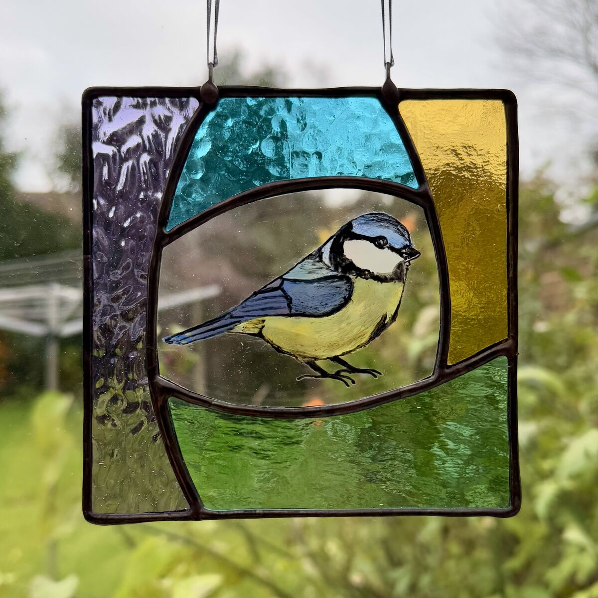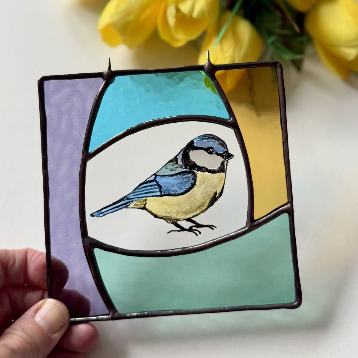 Hand Painted Blue Tit Stained Glass Sun Catcher