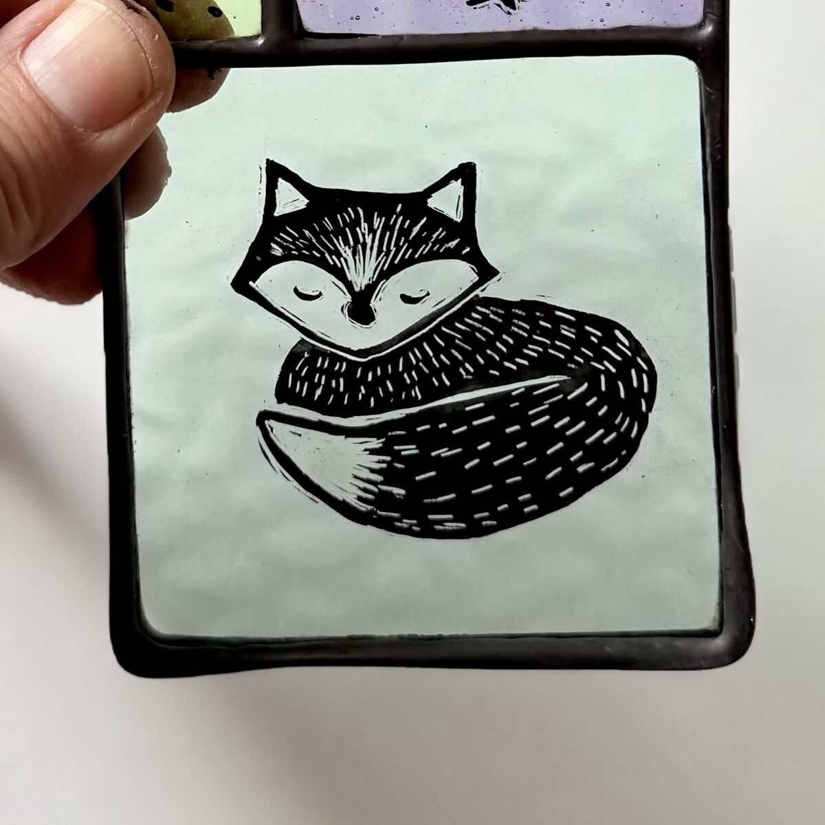 Each piece of glass has been hand cut and painted using enamel paint which is fired in my kiln to a temperature of around 670 degrees Celsius in order to permanently fix in place.