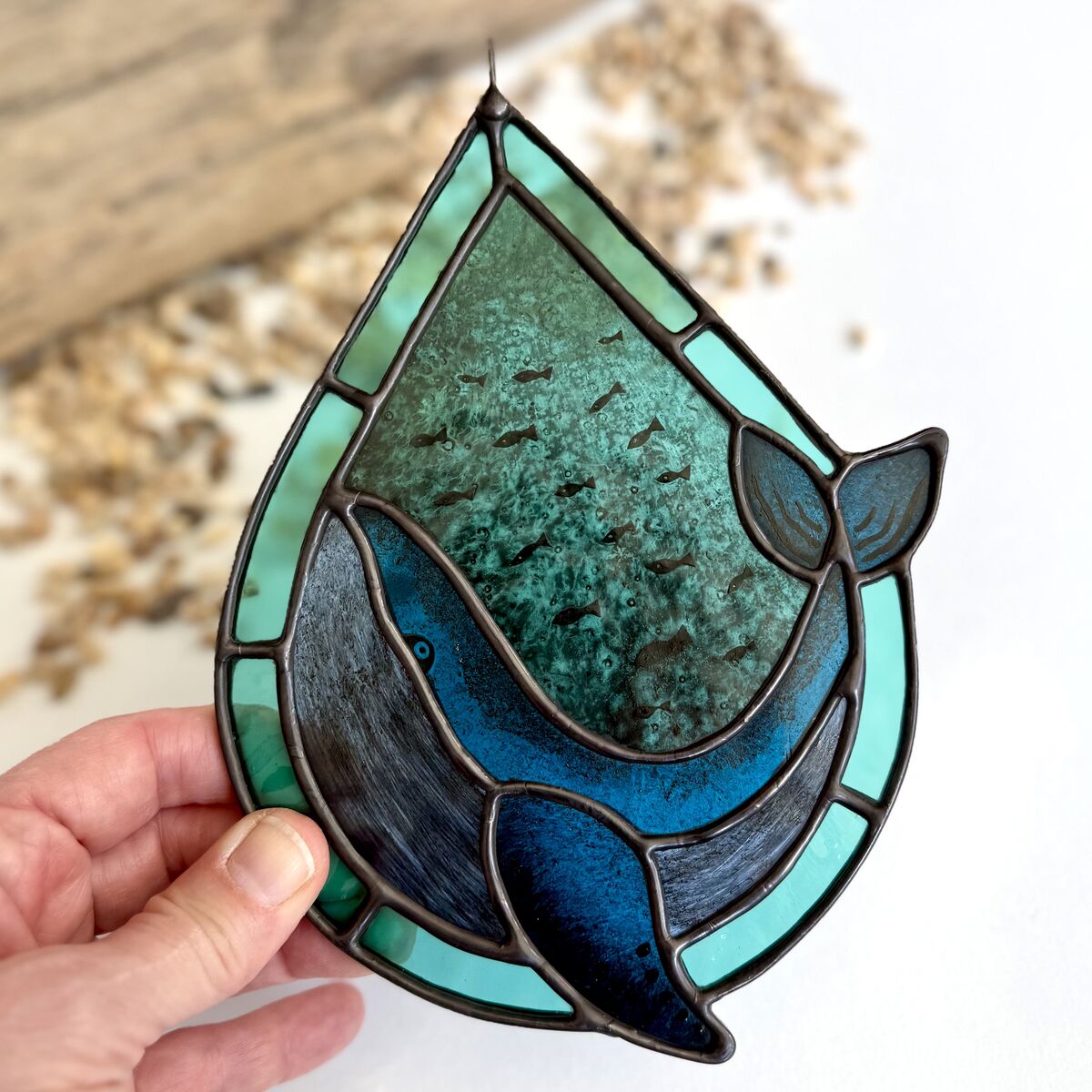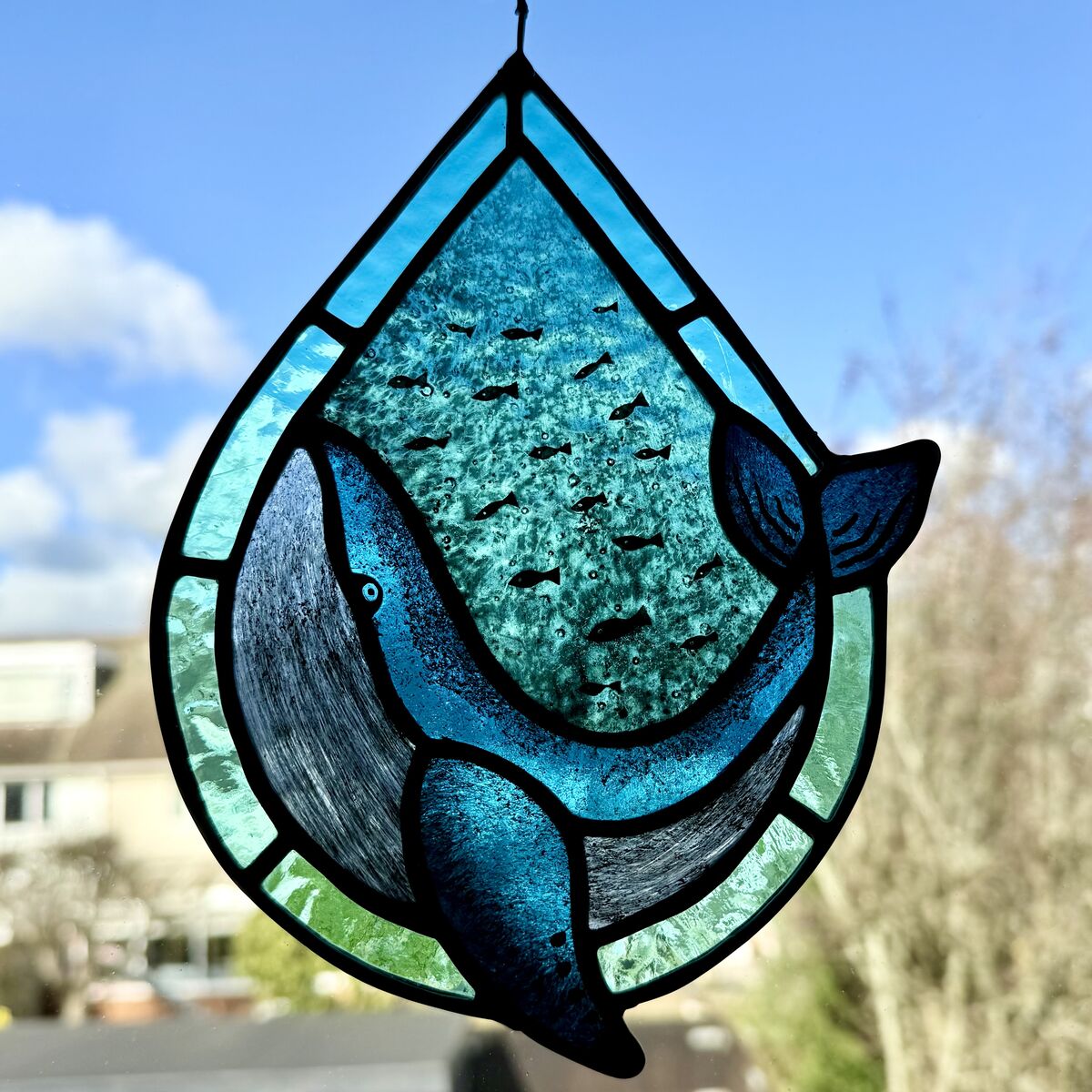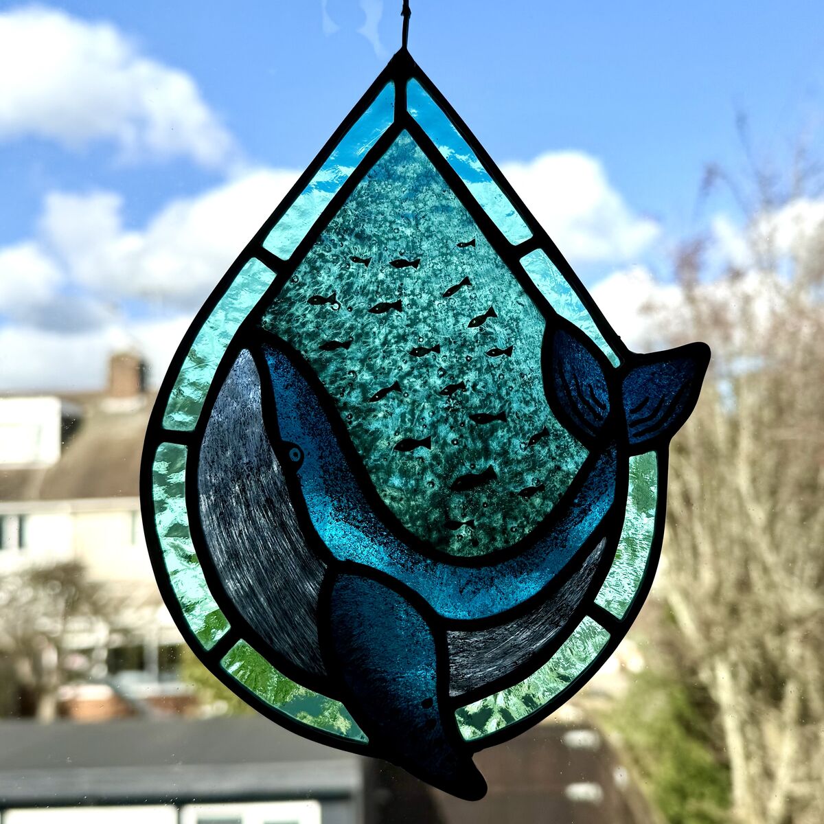 Stained Glass Whale Sun Catcher - Aquamarine